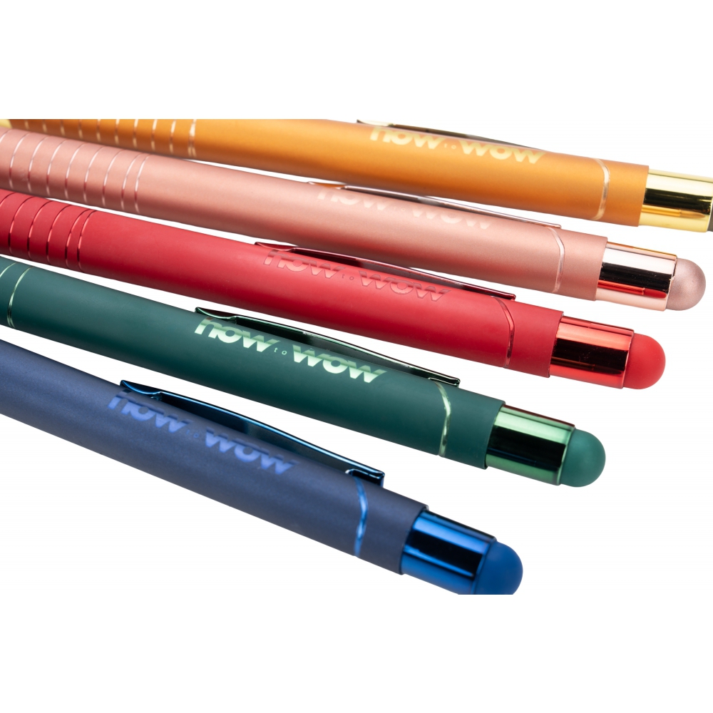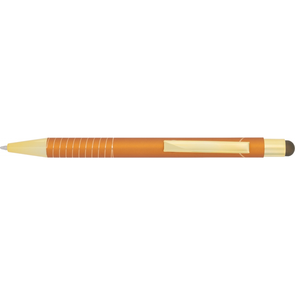 Długopis z końcówką do ekranów dotykowcyh touch-pen. Posiada błyszczące, lustrzane wykończenie.